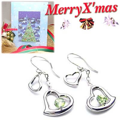 ●クリスマス限定商品今ならポイント最大5倍!(11月3日 23:59まで )◆クリスマス限定Xmasカード付( 8月誕生石 ) K14ホワイトゴールド(WG) ペリドットピアス(ハートモチーフ)【SUEHIRO】
